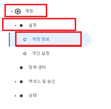 4.'작업'버튼을 누르지 않아도 계정 - 설정 - 계정 정보를 들어가 해결할 수 있습니다.